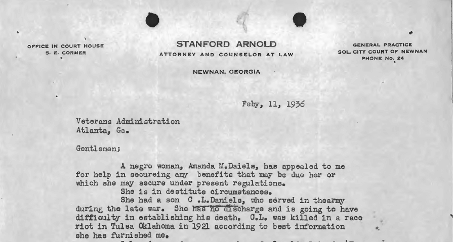 In May 1921, a young African American man, “Diamond” Dick Rowland, was arrested for allegedly assaulting a white female elevator operator. Thanks to a newspaper article published by the Tulsa Tribune on May 31st, a white mob formed outside the courthouse where Rowland was jailed. Representatives from the adjacent Black community of Greenwood repeatedly approached the sheriff offering support to maintain rule of law for Rowland, and after one of these visits someone in the white crowd accosted a Greenwood resident, shots were fired, and several men were injured or killed that night.